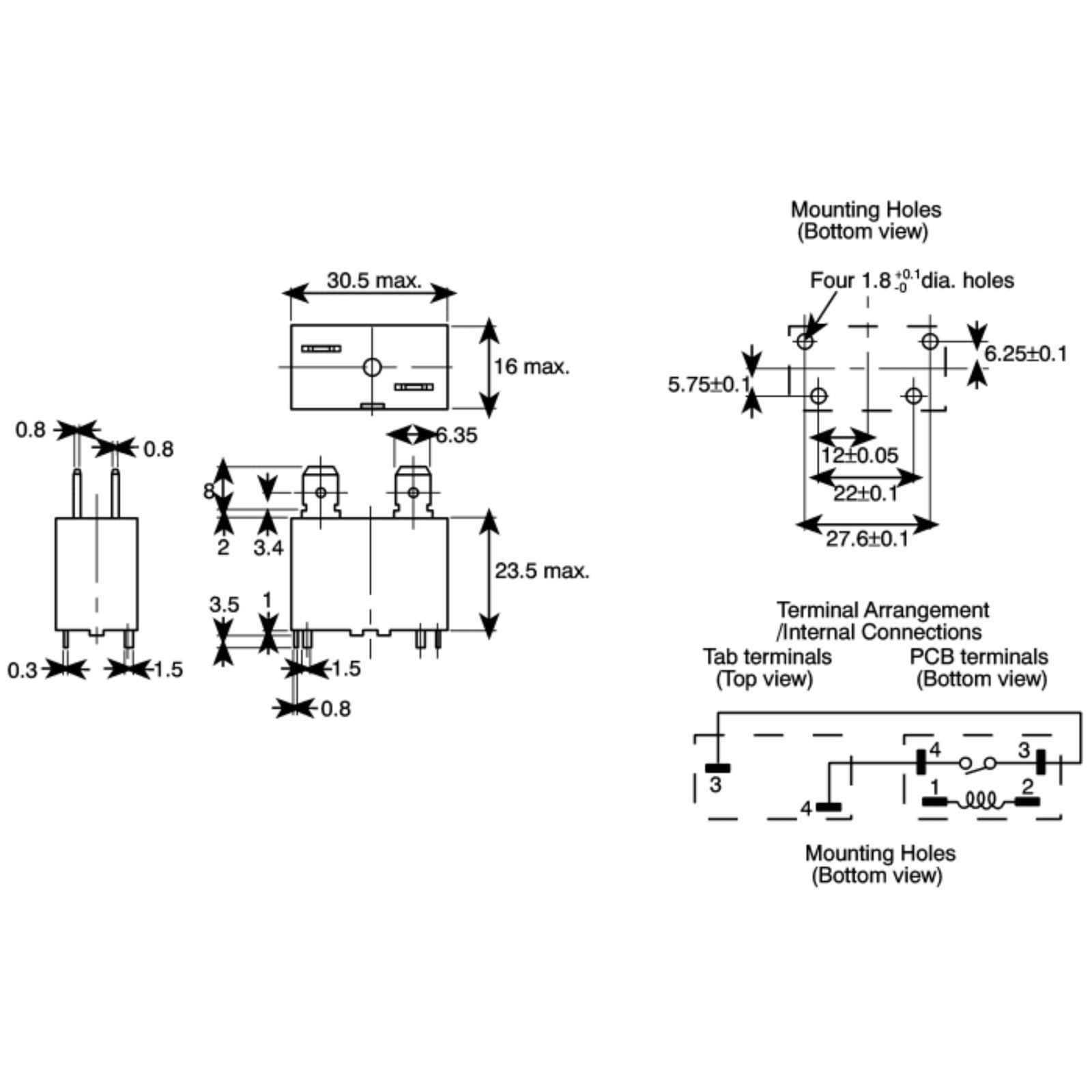 Montaža: za PCB (pinovi + Faston 6,35mm)