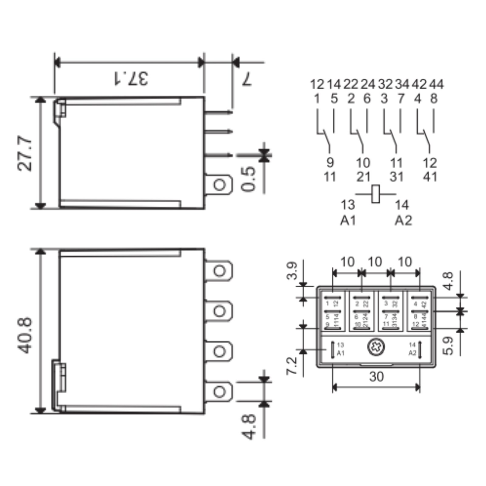 Konfiguracija kontakata: 4PDT – 4xNO/NC kontakta